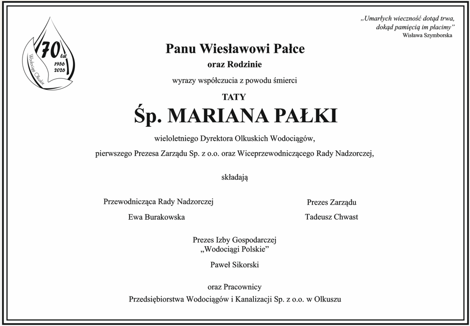 W dniu 5 wrzesnia 2025 swoje święto obchodzili pracownicy Przedsiębiorstwa Wodociągów i Kanalizacji w Olkuszu.